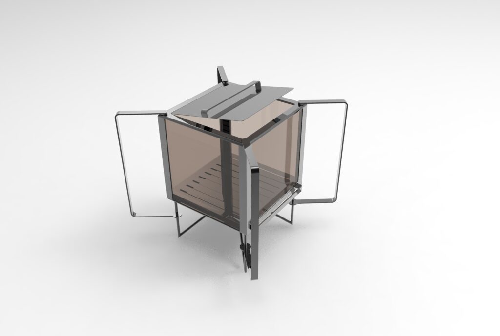 Le prototype a été utilisé et vérifié à plusieurs reprises dans différents contextes. Les tests et observations ont été concluants : une fois déposé au fond du bac, le bois s’enflamme assez vite et on obtient de belles flammes généreuses, mais d’une chaleur douce et constante .