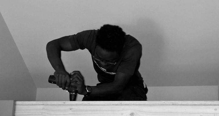 Le placement sur terrain n’est pas toujours évident : dans le cadre de cette mezzanine, il y avait lieu d’anticiper le montage, le transport et l’assemblage sur place, étant donné que la chambre d’enfant était située au premier étage. Il a fallu décomposer l’ensemble en plusieurs éléments transportables, eux-mêmes déjà bien encombrants. Deux personnes suffisaient sur place, une fois toutes les pièces acheminées. Le client et moi-même avons ainsi monté à deux l’ensemble de la mezzanine.